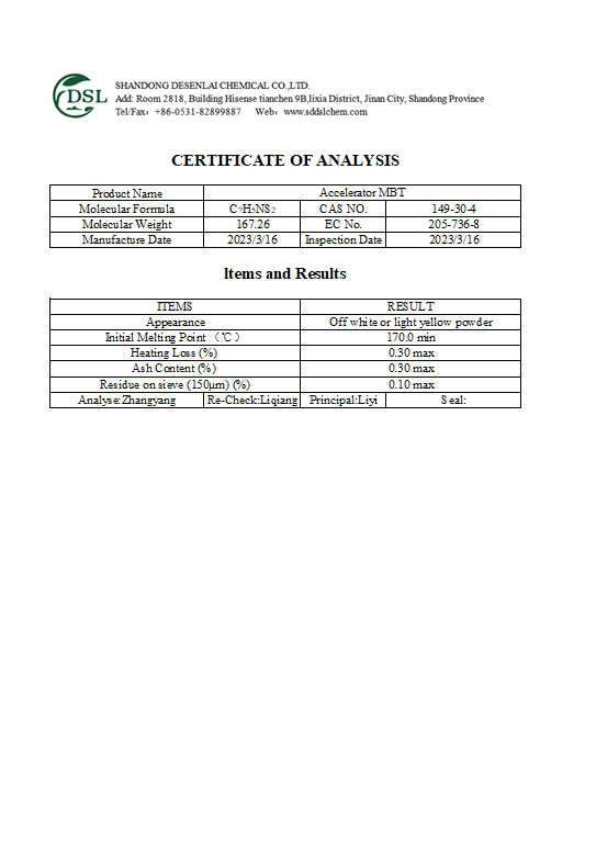 Natural gum and synthetic gum accelerator, can be used alone, or with sulfide carbamate, thiuram, guanidine, and other alkaline accelerator. It has rapid promoting effect on natural rubber and general sulfur yellow sulfur rubber. Its critical temperature of sulfur is low. It is easy to disperse in rubber and does not pollute. Mainly used in the manufacture of tires, tape, rubber shoes and other industrial rubber products. In IR, NR, SBR, NBR, HR and EPOM systems, it is a major acid curing agent with moderate curing rate, and can achieve higher activity when combined with other curing agents such as DM and TMTD. Its low vulcanization temperature, easy to disperse in rubber, no pollution, mainly used in the manufacture of tires, tape, rubber shoes and other industrial rubber products, but can not be used as food materials.