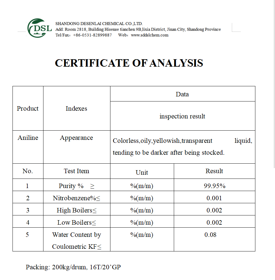 Certifitate Of Analysis OF Aniline Oil
