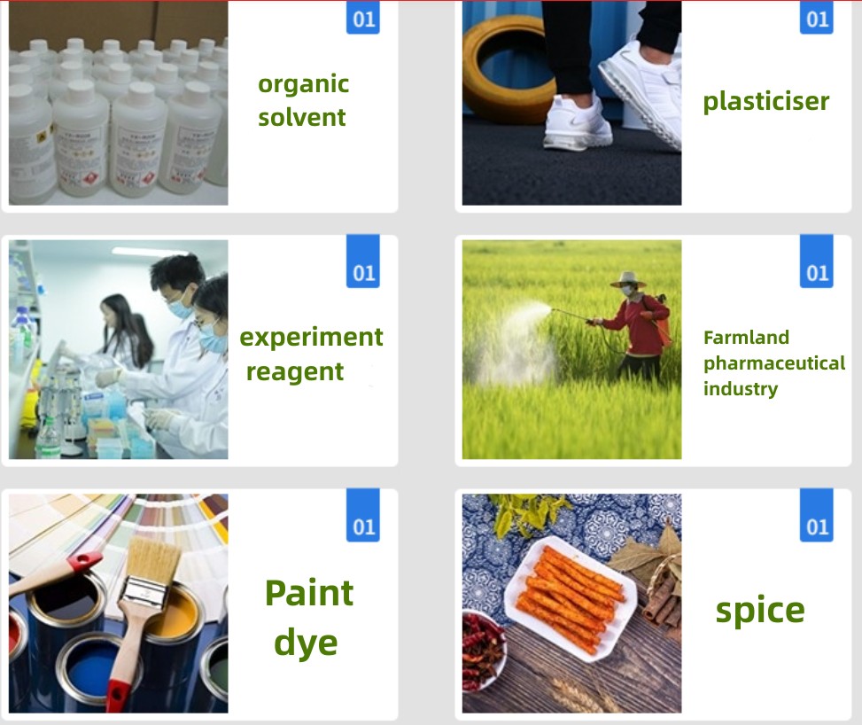 1. It is used as a solvent for nitro spray paint, paint, adhesive and varnish, and as a raw material and rubber assistant for the manufacture of aniline, phenol, picric acid, dye, artificial musk, synthetic fiber, medicine, fragrance, insecticide, etc